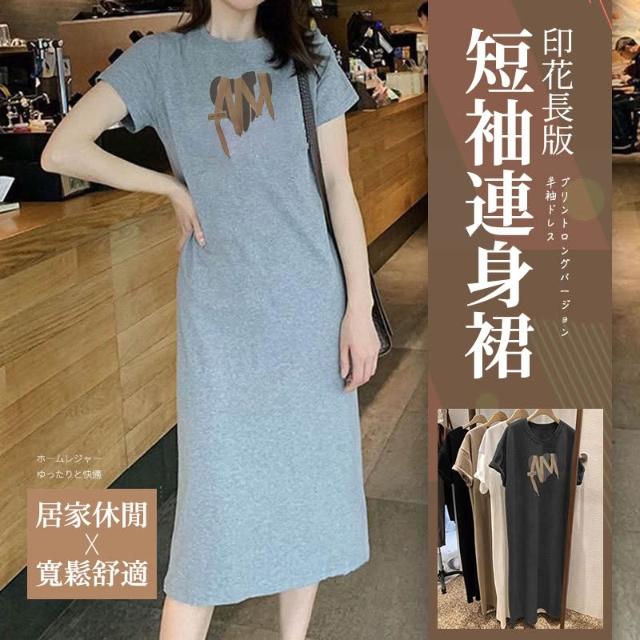 JDUDS印花長版短袖連身裙 休閒連衣裙 女短袖長裙 寬鬆T恤洋裝 寬鬆休閒連身裙 T恤洋裝 居家T恤裙