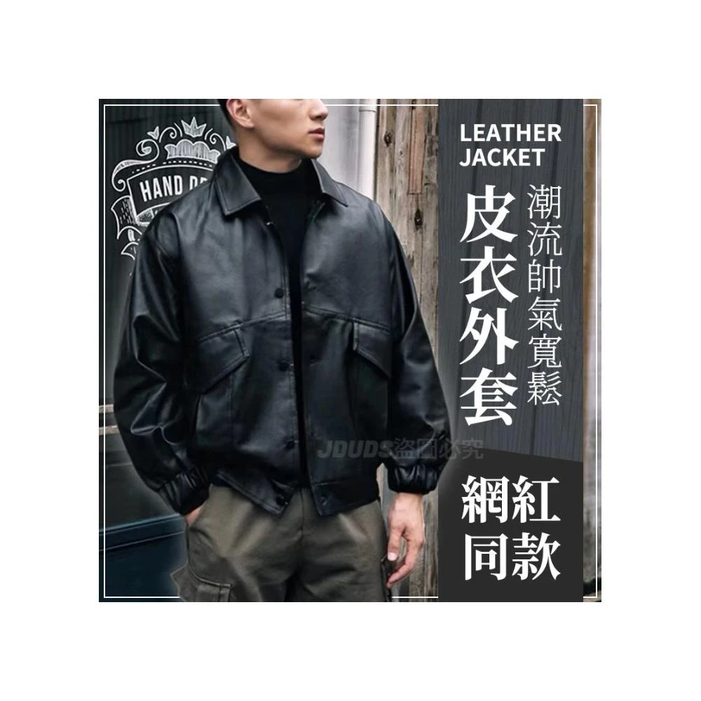 JDUDS男生皮衣 潮流帥氣寬鬆皮衣外套 機車皮衣 飛行員夾克 秋季夾克 男生外套 翻領外套 個性外套