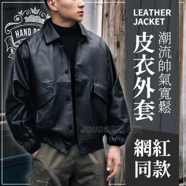 JDUDS男生皮衣 潮流帥氣寬鬆皮衣外套 機車皮衣 飛行員夾克 秋季夾克 男生外套 翻領外套 個性外套