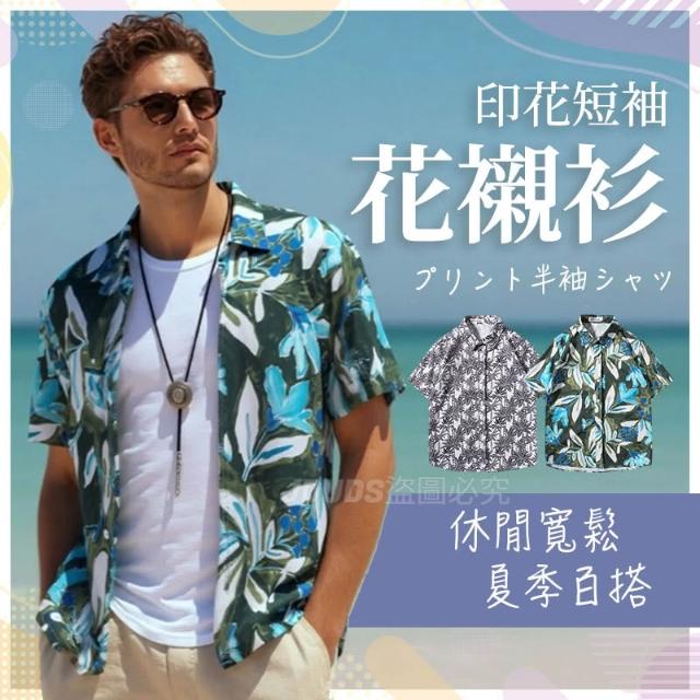 JDUDS印花短袖花襯衫 男復古襯衫 沙灘度假襯衫 休閒寬鬆上衣 男士花襯衫 男短袖襯衫