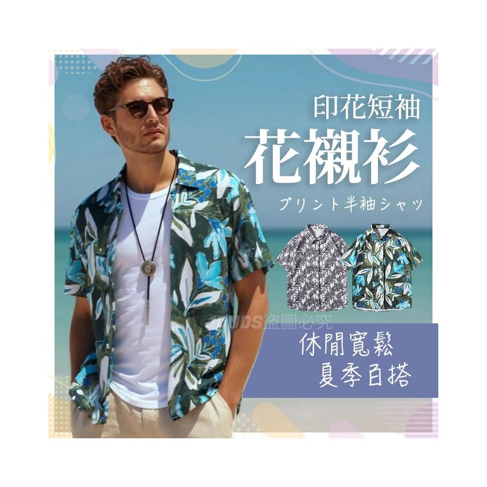 JDUDS印花短袖花襯衫 男復古襯衫 沙灘度假襯衫 休閒寬鬆上衣 男士花襯衫 男短袖襯衫