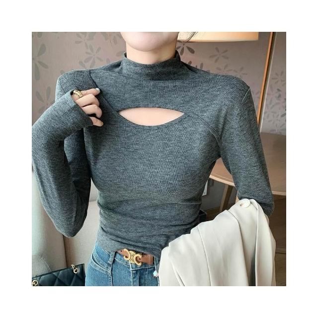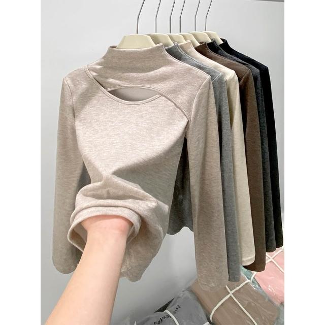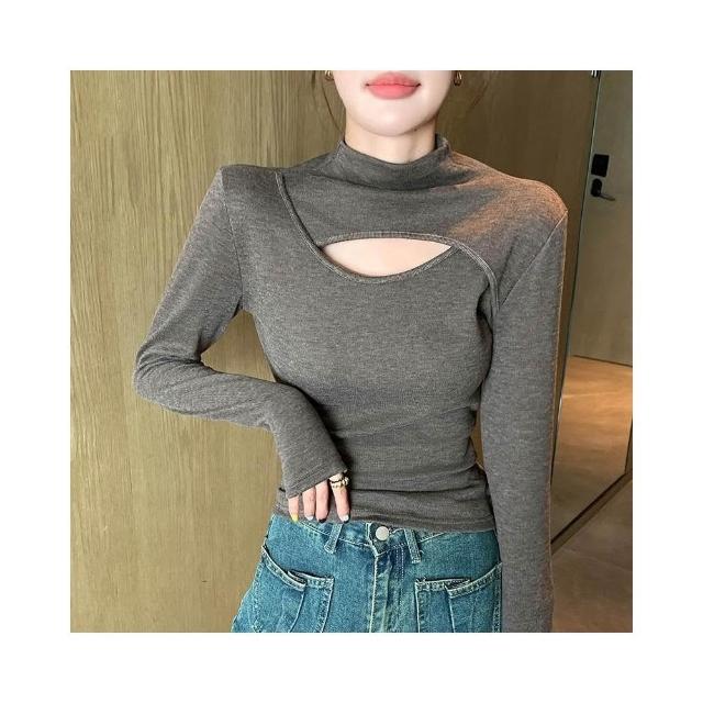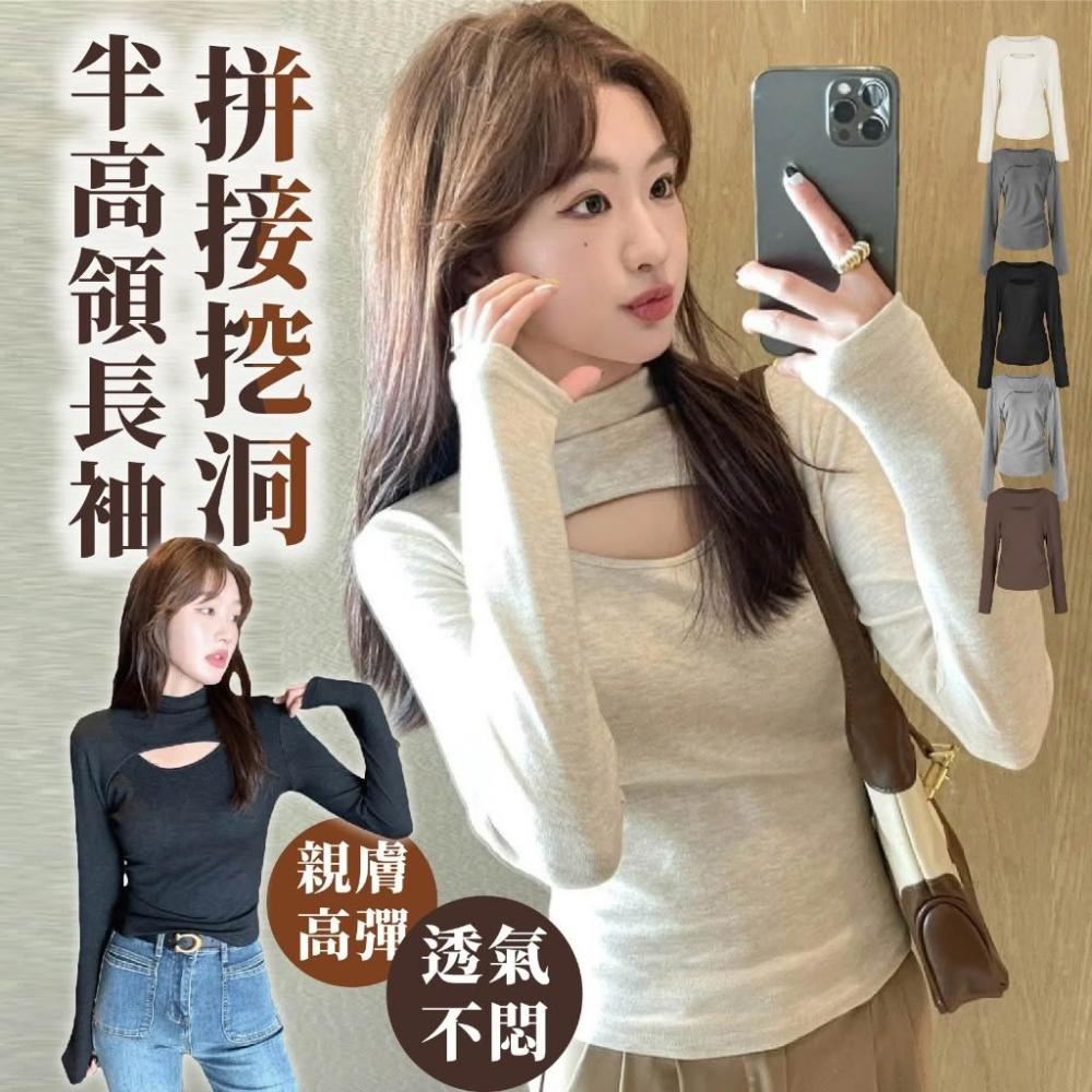 JDUDS韓系拼接挖洞半高領長袖T 小心機打底衫 女團穿搭 長袖上衣 半高領長袖上衣 女裝