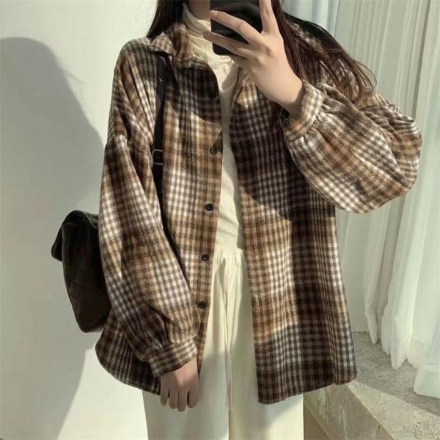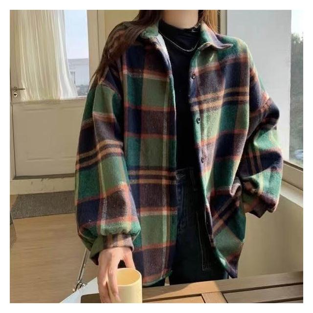 JDUDS女仿毛呢秋冬厚格子襯衫 襯衫外套 秋冬格子外套 格子衫 慵懶風外套 厚襯衫女裝