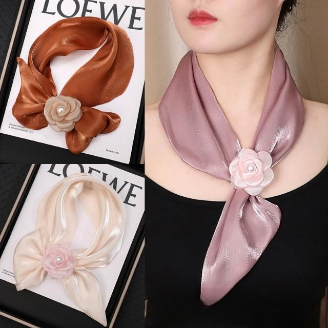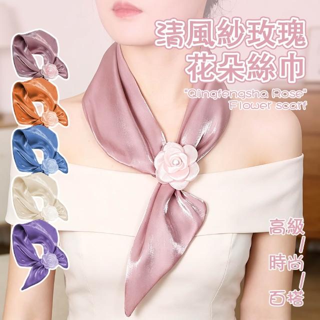 JDUDS玫瑰花朵絲巾 氣質 領巾 高級感 時尚 晚宴 成熟感 服飾配件 晚宴絲巾 花朵絲巾