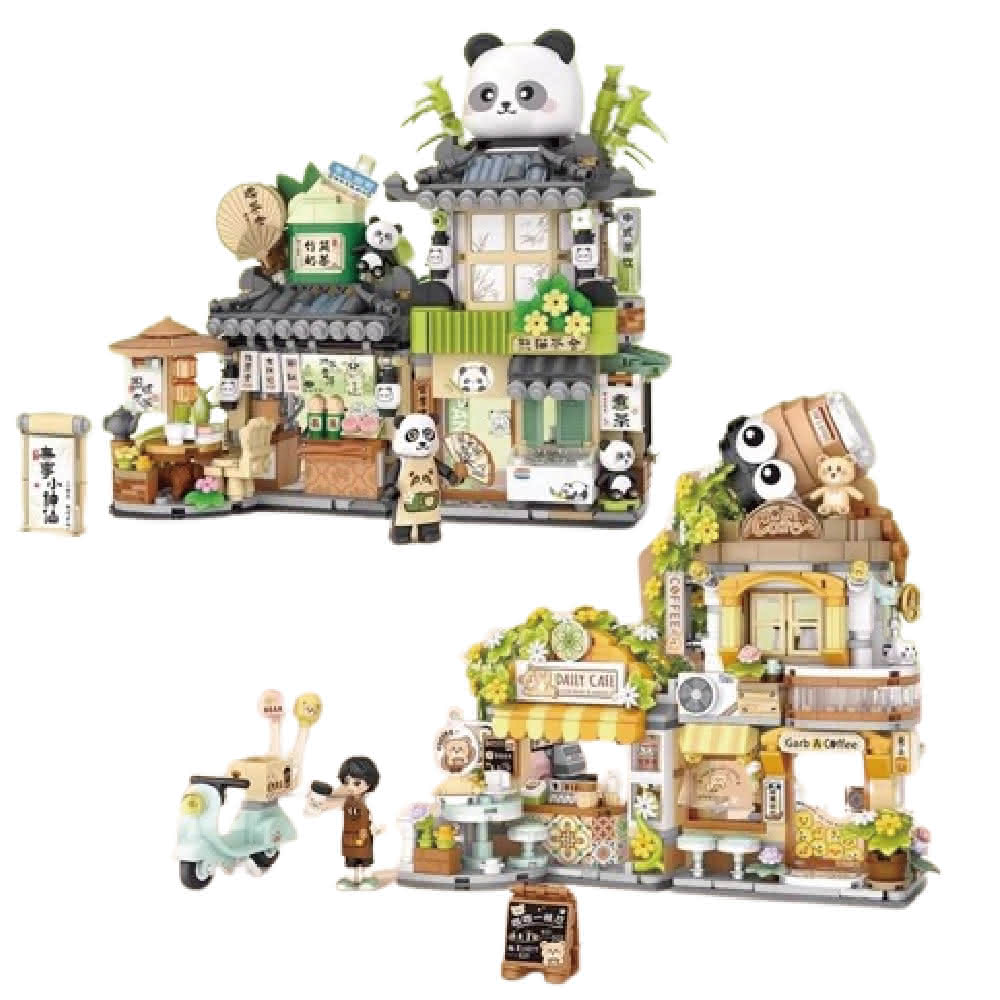 LOZLOZ 小熊咖啡 熊貓茶舍 日式街景積木 mini顆粒街景積木 街景積木 1382 1383(Loz mini 街景積木)