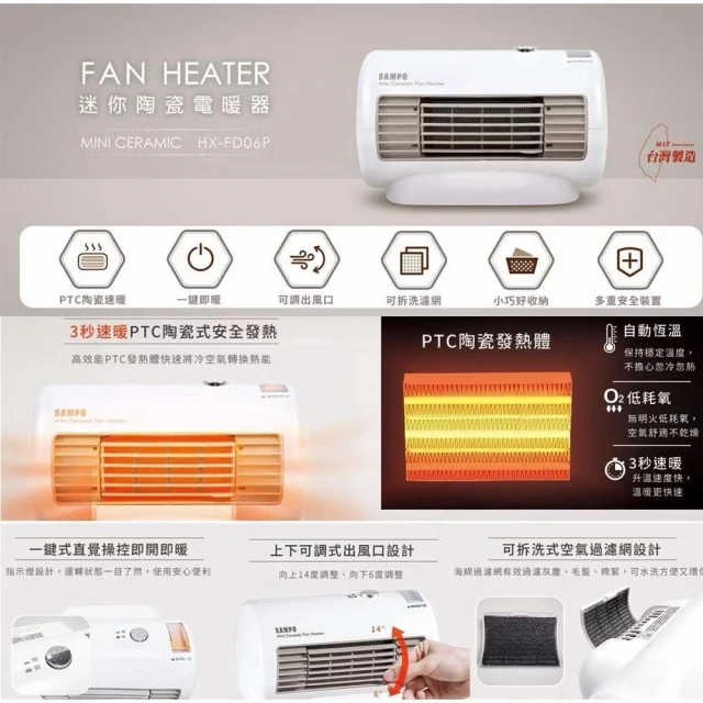 SAMPO 聲寶現貨 迷你 陶瓷式 電暖器 HX-FD06P