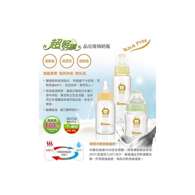 Simba 小獅王辛巴超輕鑽玻璃奶瓶240ml 標準口徑搭配十字孔S號奶嘴 宜兒樂