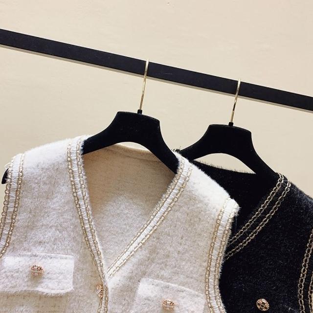 Paiya 派亞超推水貂絨馬甲小香風外套無袖針織背心開衫外搭均碼S到XL可穿現貨