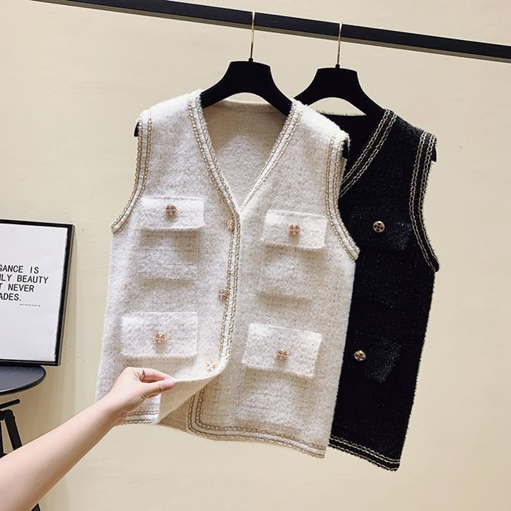 Paiya 派亞超推水貂絨馬甲小香風外套無袖針織背心開衫外搭均碼S到XL可穿現貨
