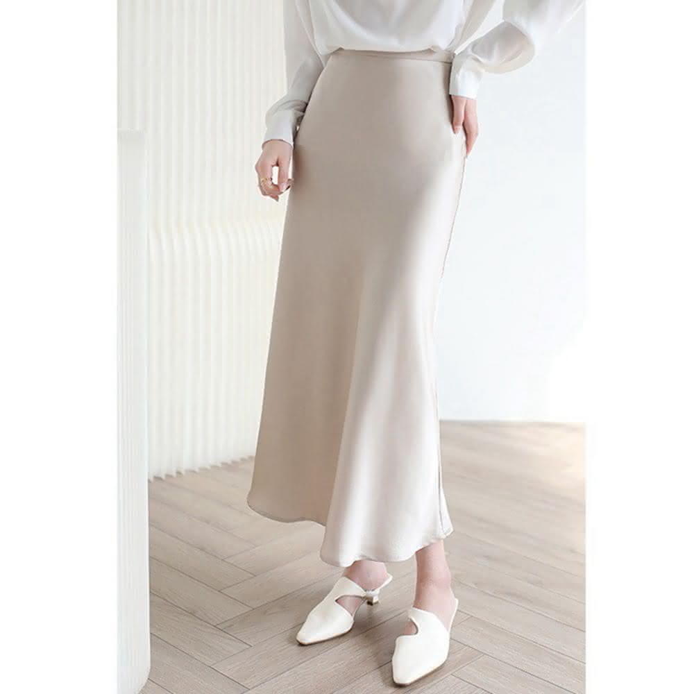 Paiya 派亞夏季高級感法式三醋酸緞面真絲質感半身裙女中長款高端魚尾長裙子S-XL