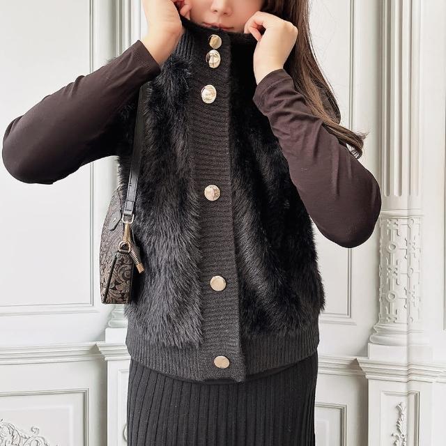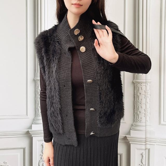 Paiya 派亞秋冬新款寬鬆氣質優雅針織開衫立領貂絨無袖毛衣女外套均碼M-2XL可穿