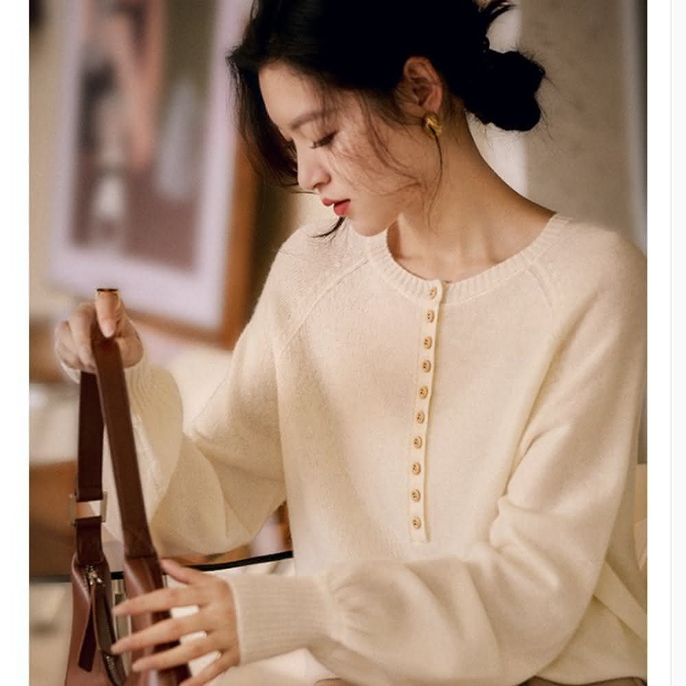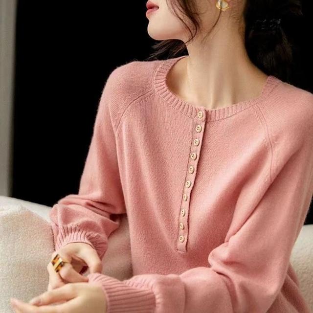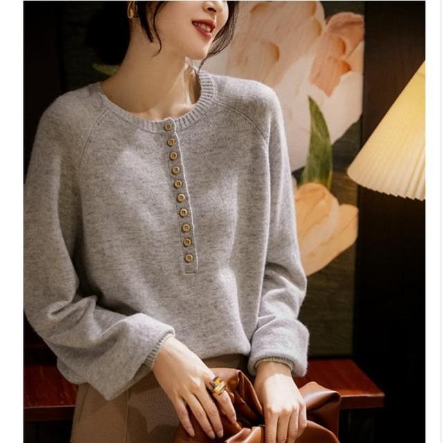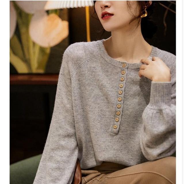 Paiya 派亞慵懶風洋氣亨利領套頭衫秋冬毛衣上衣長袖針織衫均碼M-2XL可穿