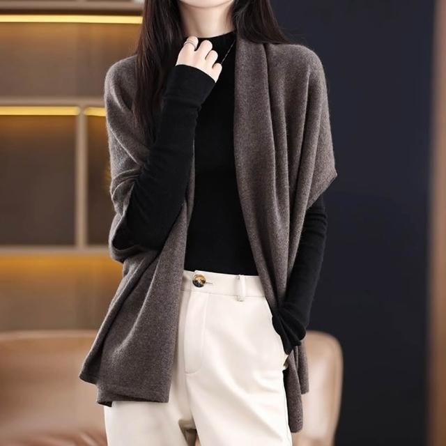 Paiya 派亞新款蝙蝠袖披肩寬鬆洋氣針織中長款開衫外套均碼M-2XL可穿