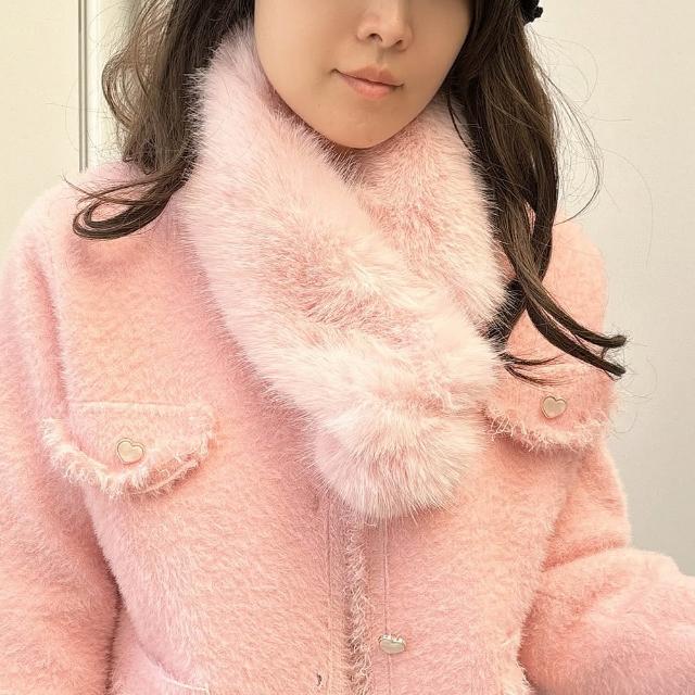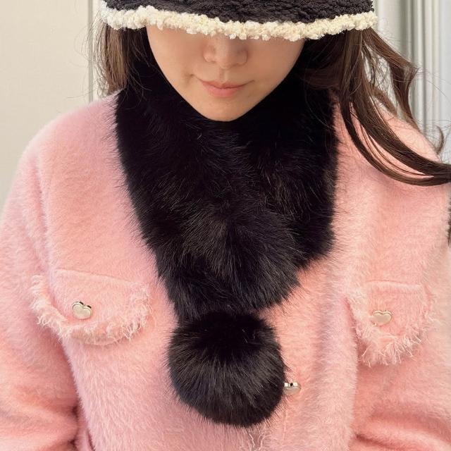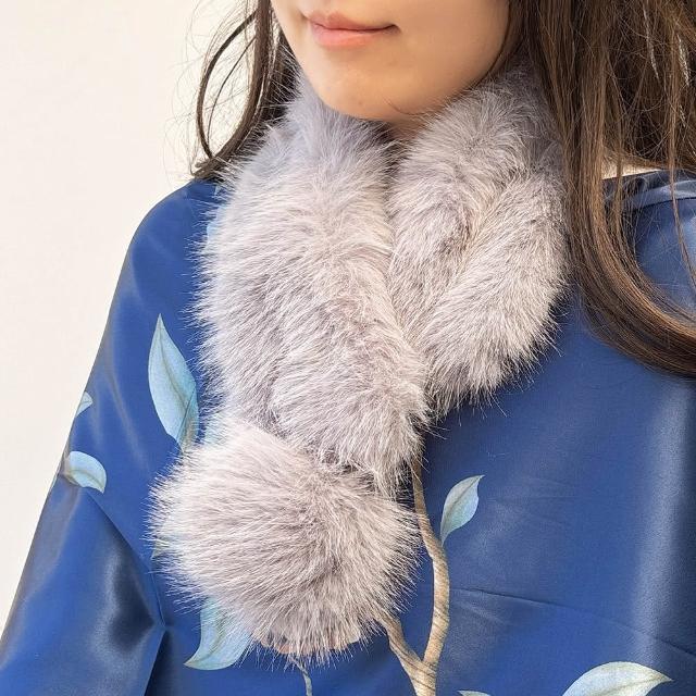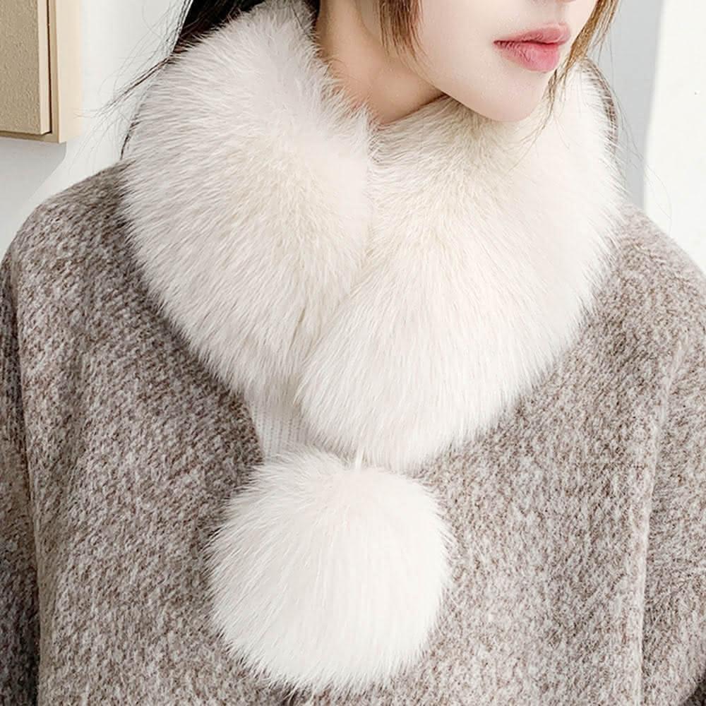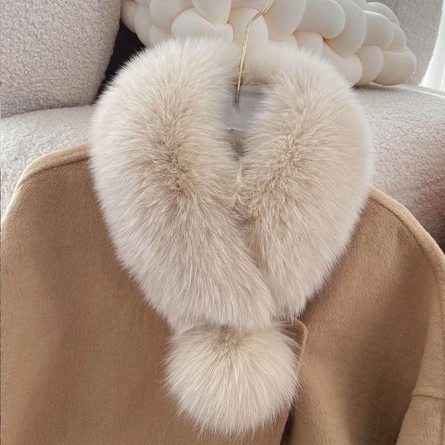 Paiya 派亞現貨自製超真仿皮草圍脖不掉毛保暖圍巾白色狐狸毛毛帶球冬配漢服
