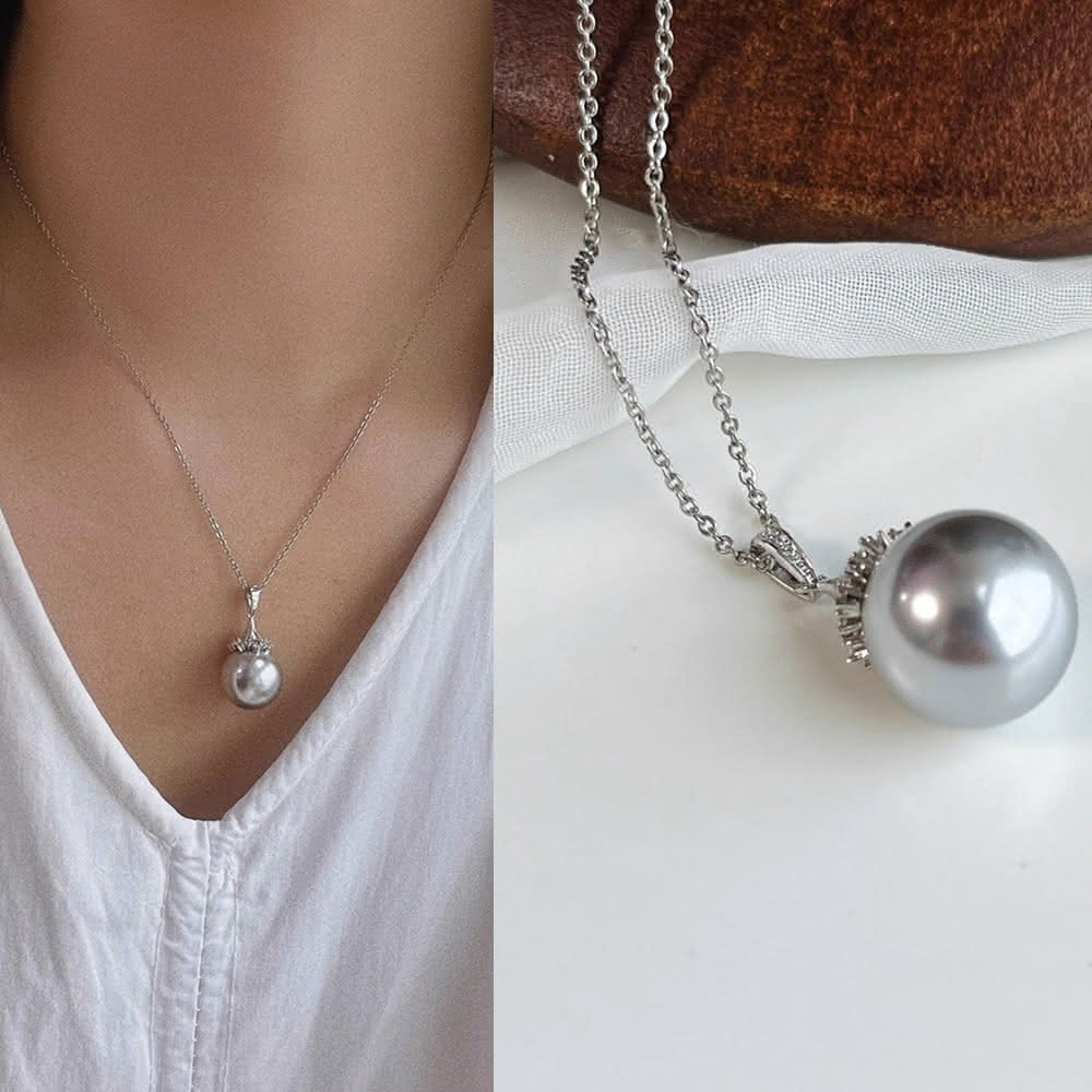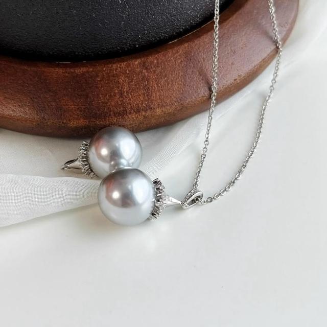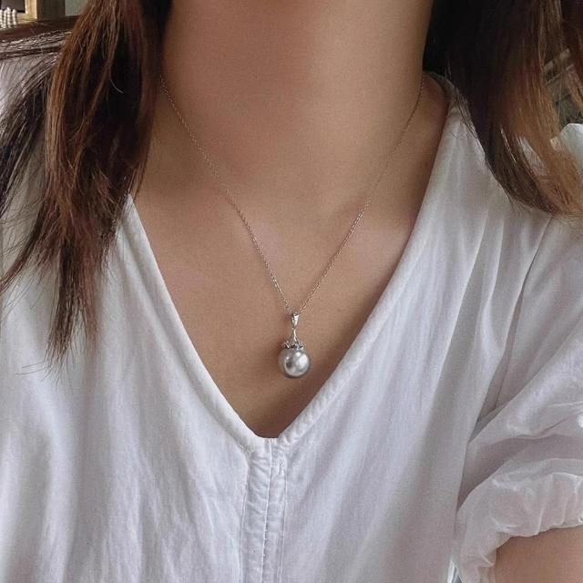 Paiya 派亞高品質14mm施家鉑金灰珍珠吊墜 配送鏈子清冷鉑金灰色小眾高級感交換禮物/過年送禮