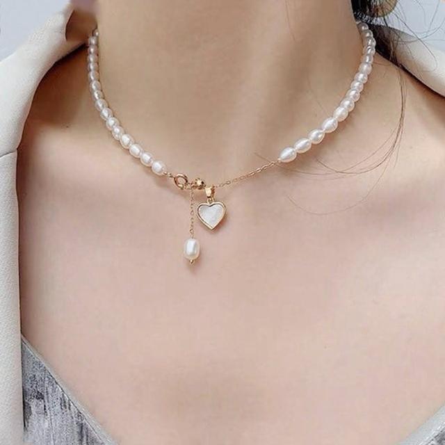 Paiya 派亞淡水珍珠項鍊輕奢小眾愛心頸鏈女簡約設計潮搭珍珠鏈交換禮物/過年送禮