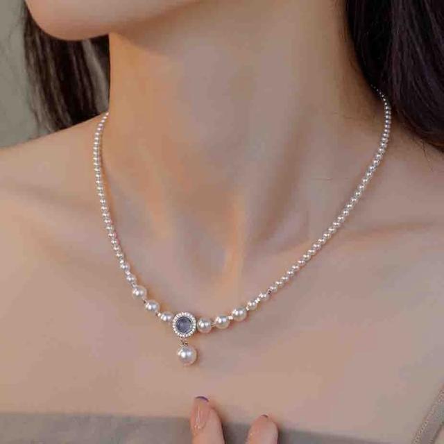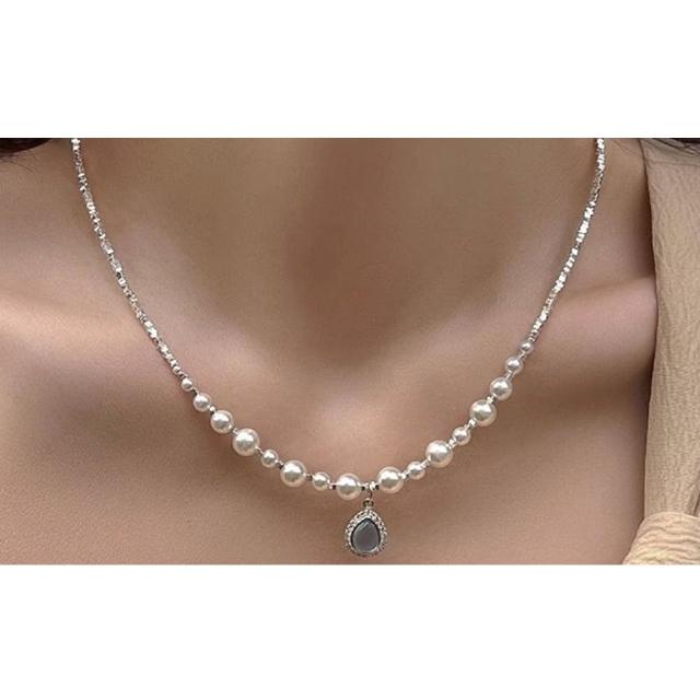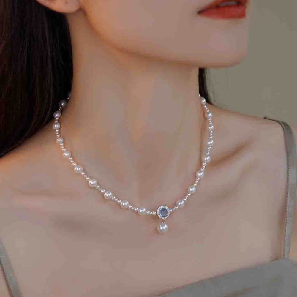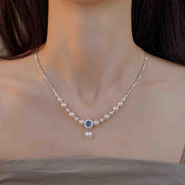 Paiya 派亞S925銀海藍寶碎銀淡水珍珠項鍊法式輕奢優雅小眾氣質高級感鎖骨鏈交換禮物/過年送禮