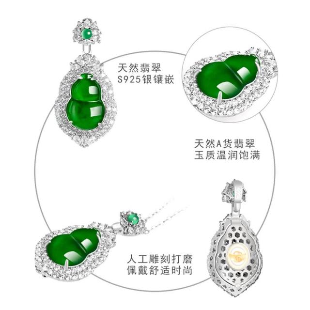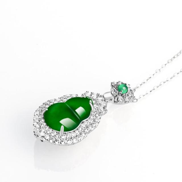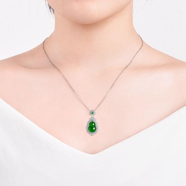 Paiya 派亞a貨翡翠陽綠葫蘆S925銀鑲冰種玉石吊墜玉墜女款項鏈