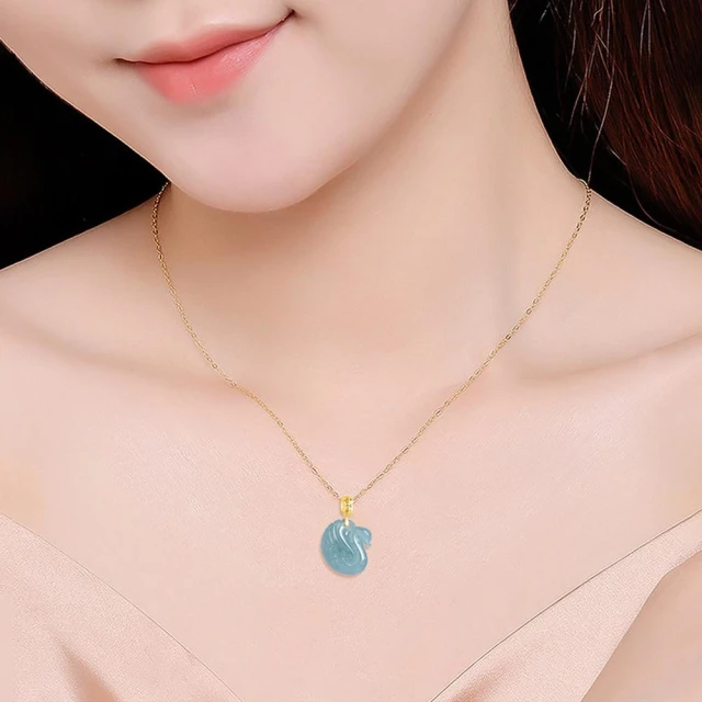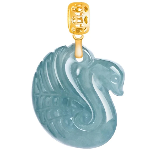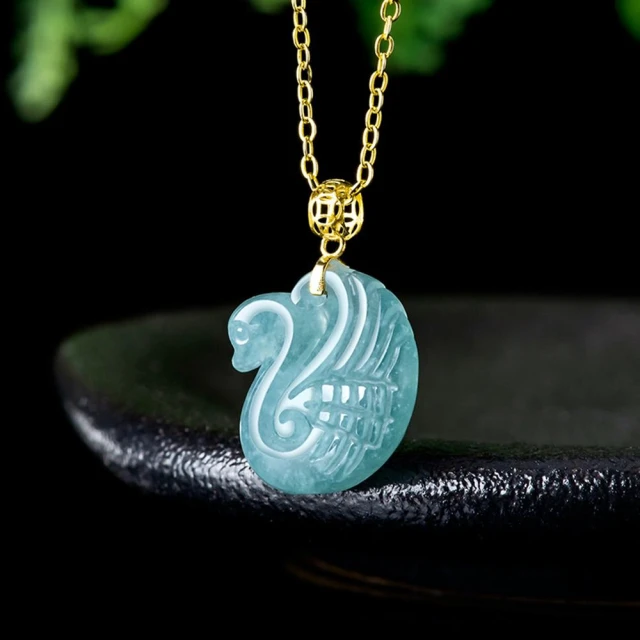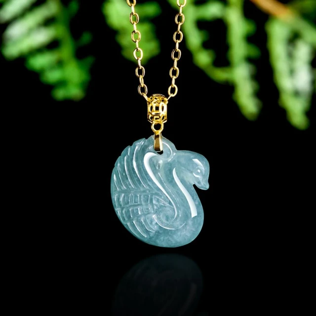 Paiya 派亞A貨翡翠藍水天鵝吊墜18K金鑲嵌冰種玉石挂件時尚女款玉墜項鏈