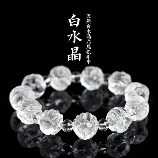 Paiya 派亞白水晶九尾狐狸圓珠手鏈球形手串