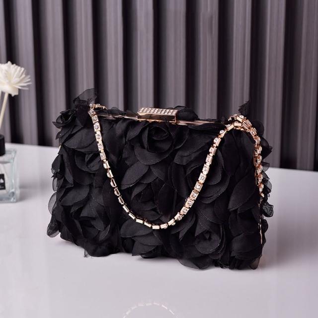 Paiya 派亞雪紡花朵晚宴包香槟色女士旗袍包手工禮服包鑽飾包4色可選