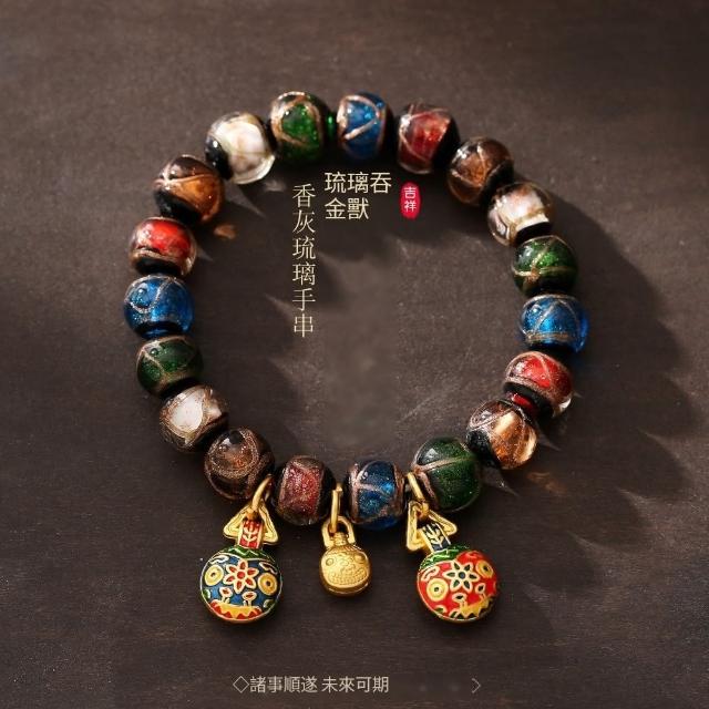 Paiya 派亞雍老秦同款香灰琉璃手串五彩香灰壹家三口十全十美吞金獸宮廷手鏈送禮好物/交換禮物