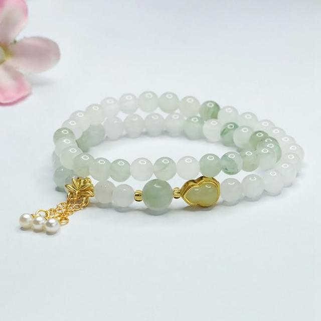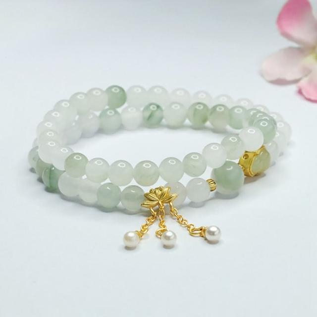Paiya 派亞6mm淡雅溫潤天山翠手串雙圈手鏈玉石古風手環中國翡翠