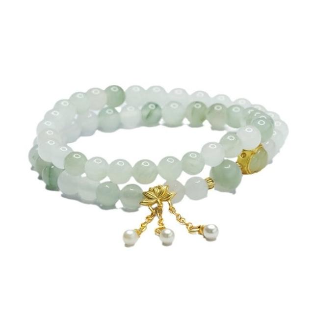 Paiya 派亞6mm淡雅溫潤天山翠手串雙圈手鏈玉石古風手環中國翡翠