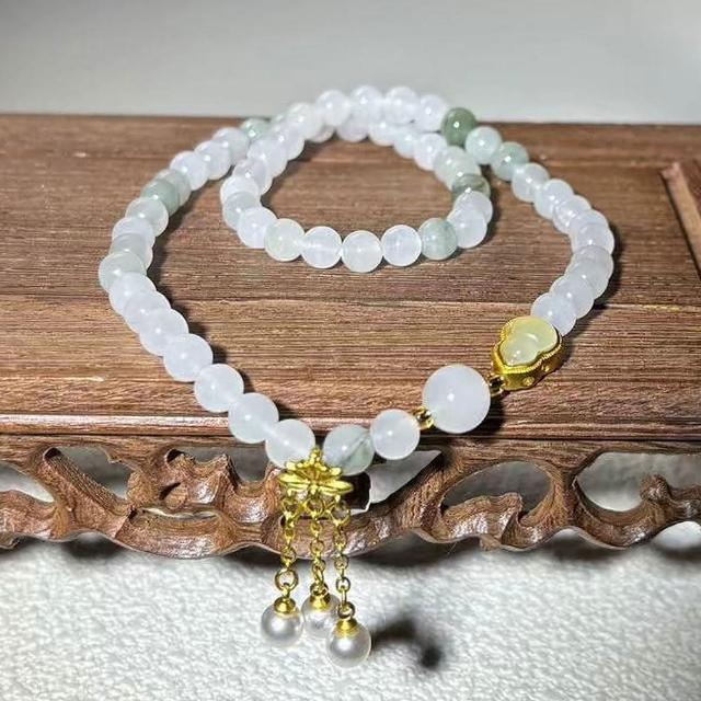 Paiya 派亞6mm淡雅溫潤天山翠手串雙圈手鏈玉石古風手環中國翡翠