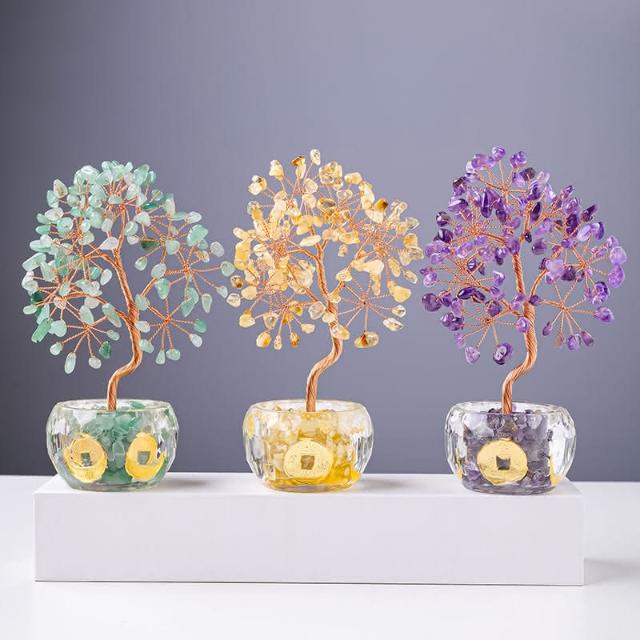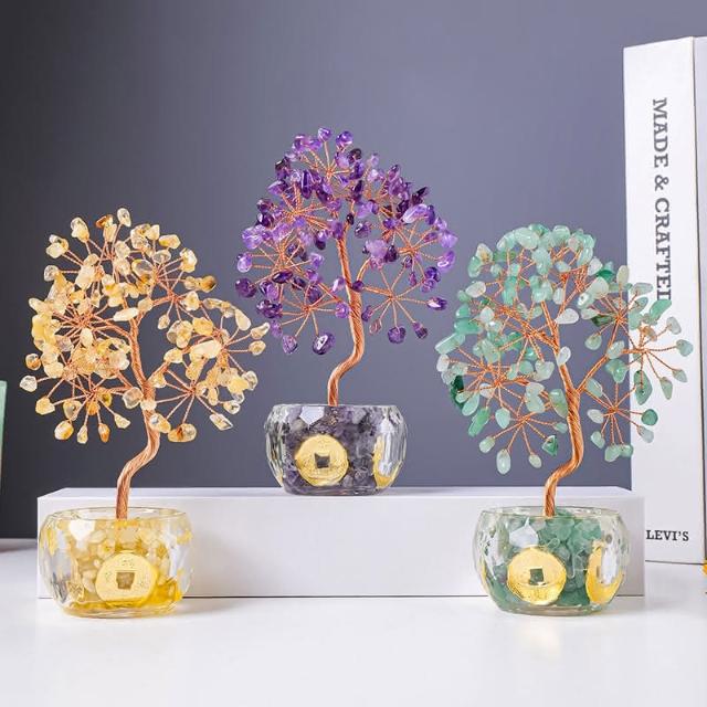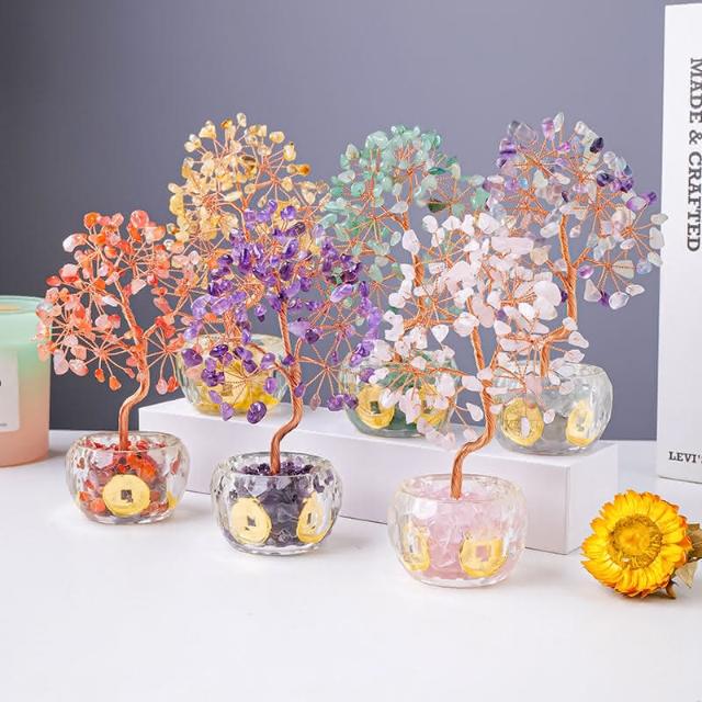 Paiya 派亞鑽石碗七彩水晶碎石發財樹水晶生命樹家居辦公招財樹裝飾擺件送禮好物/交換禮物