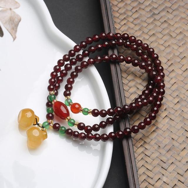 Paiya 派亞三圈石榴石手鏈 雙葫蘆玉髓手串手飾diy複古簡約風首飾品送禮好物/交換禮物