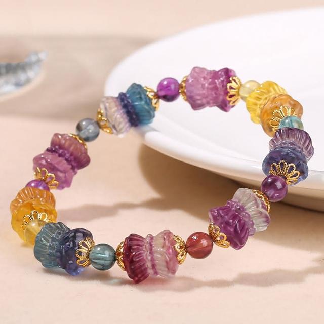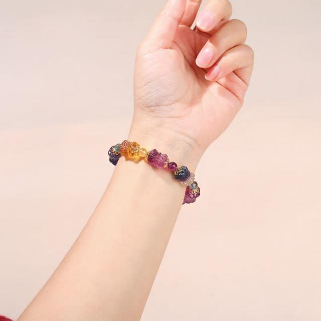 Paiya 派亞雕刻7A螢石貔貅並蒂蓮吞金獸心經桶珠手串手鏈送禮好物/交換禮物