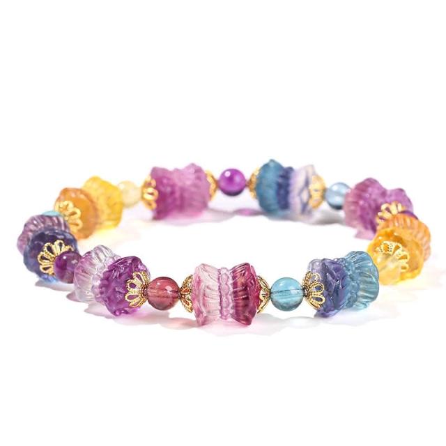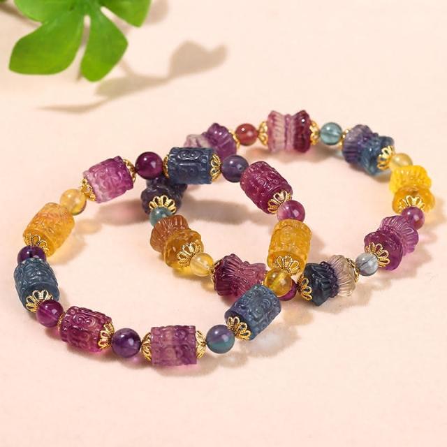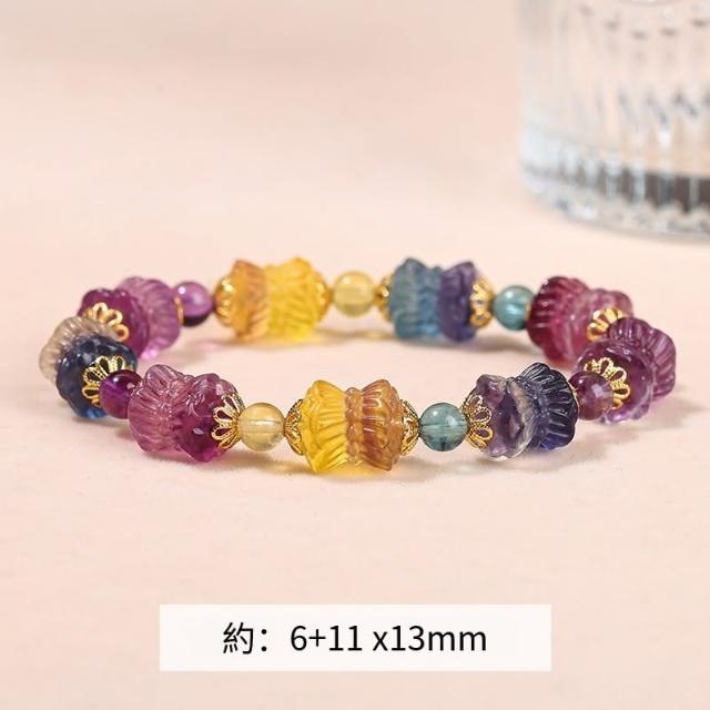 Paiya 派亞雕刻7A螢石貔貅並蒂蓮吞金獸心經桶珠手串手鏈送禮好物/交換禮物