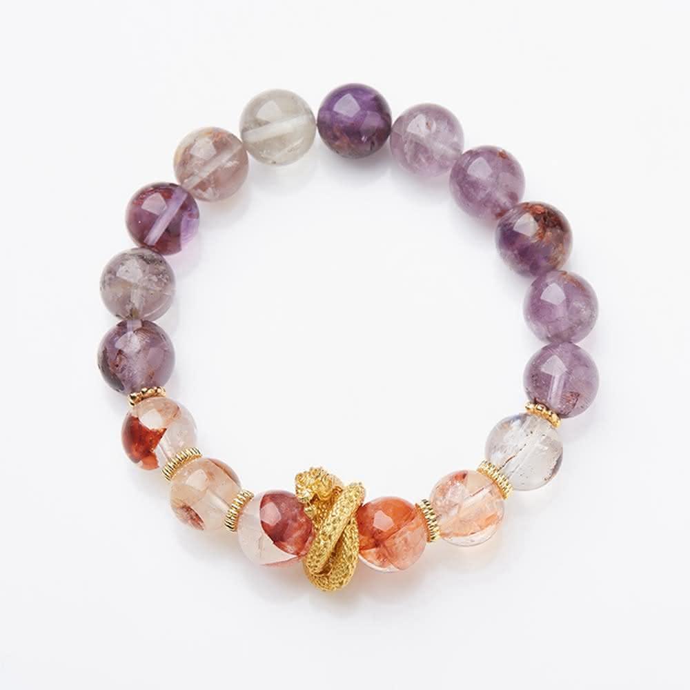 Paiya 派亞10mm好事成雙紫幽靈紅膠花手鏈女紫色聚寶盆九紫離火好運水晶手串招財增緣、淨化辟邪