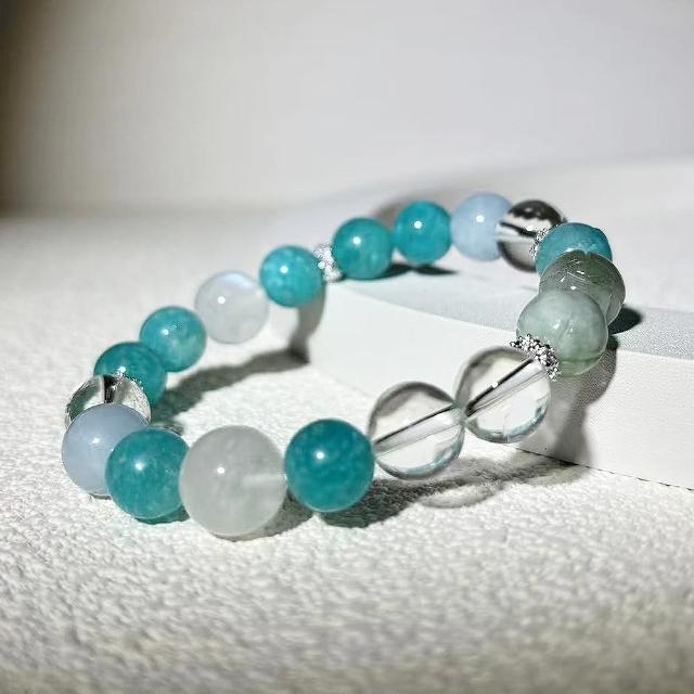 Paiya 派亞原創設計師款9MM莫桑比克天河石7A白水晶月光石蓮花翡翠A貨海藍寶手鏈手串手環都是無優化