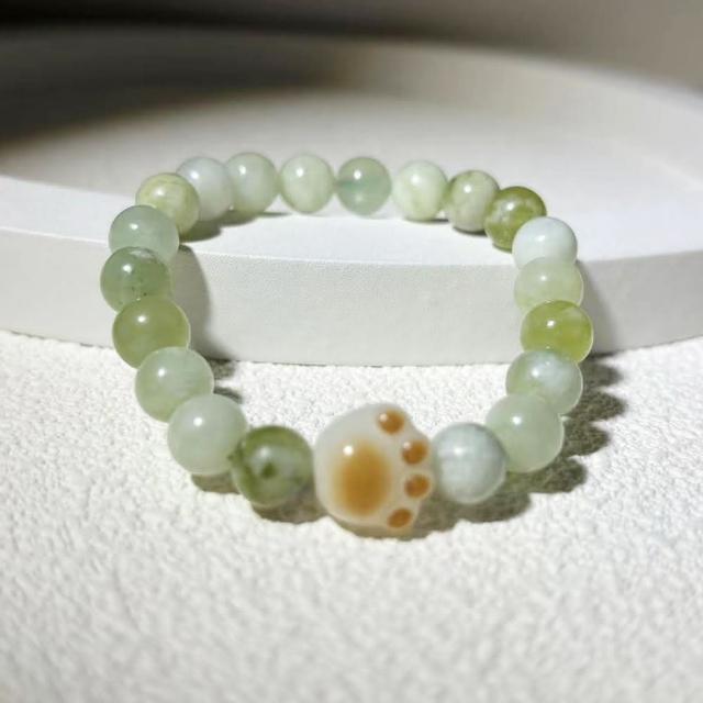 Paiya 派亞原創設計師8mm青提奶蓋岫玉圓珠青玉菩提貓爪手串手環手鏈