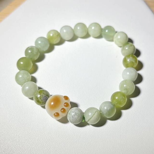 Paiya 派亞原創設計師8mm青提奶蓋岫玉圓珠青玉菩提貓爪手串手環手鏈