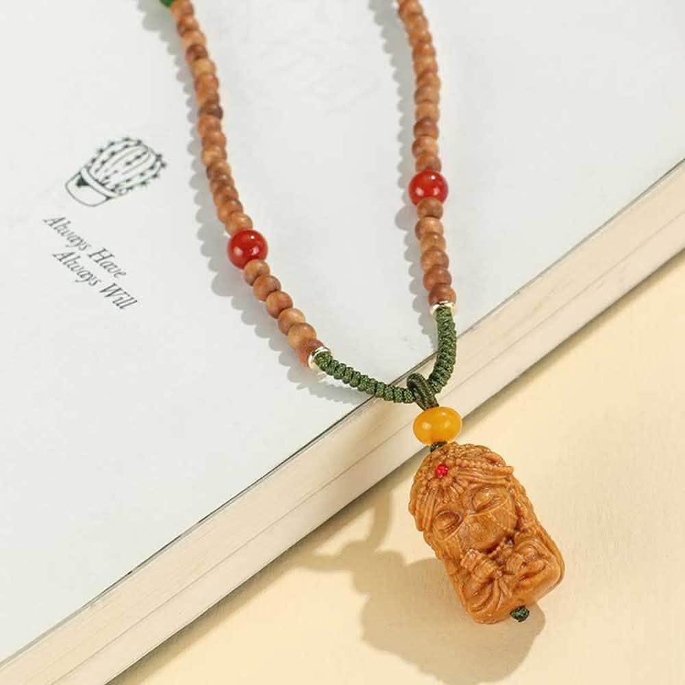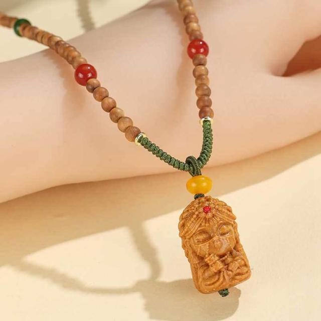 Paiya 派亞老山檀木南紅串珠項鏈女夏季高級感綠玉髓民族風度姆吊墜飾品送禮好物/交換禮物
