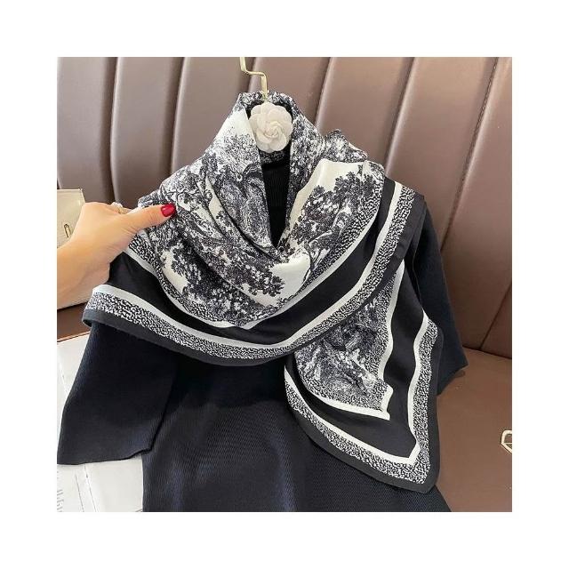 達賀尊爵韓版複古印花圍巾圍脖時尚百搭90方巾仿綿羊毛手感領巾領帶絲巾女絲巾圍巾小方巾