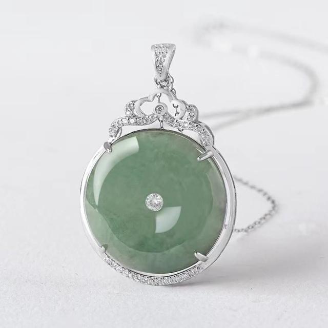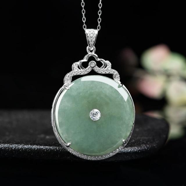 Paiya 派亞S925銀鑲嵌A貨翡翠油青平安扣吊墜冰種玉石挂件女士項鏈時尚