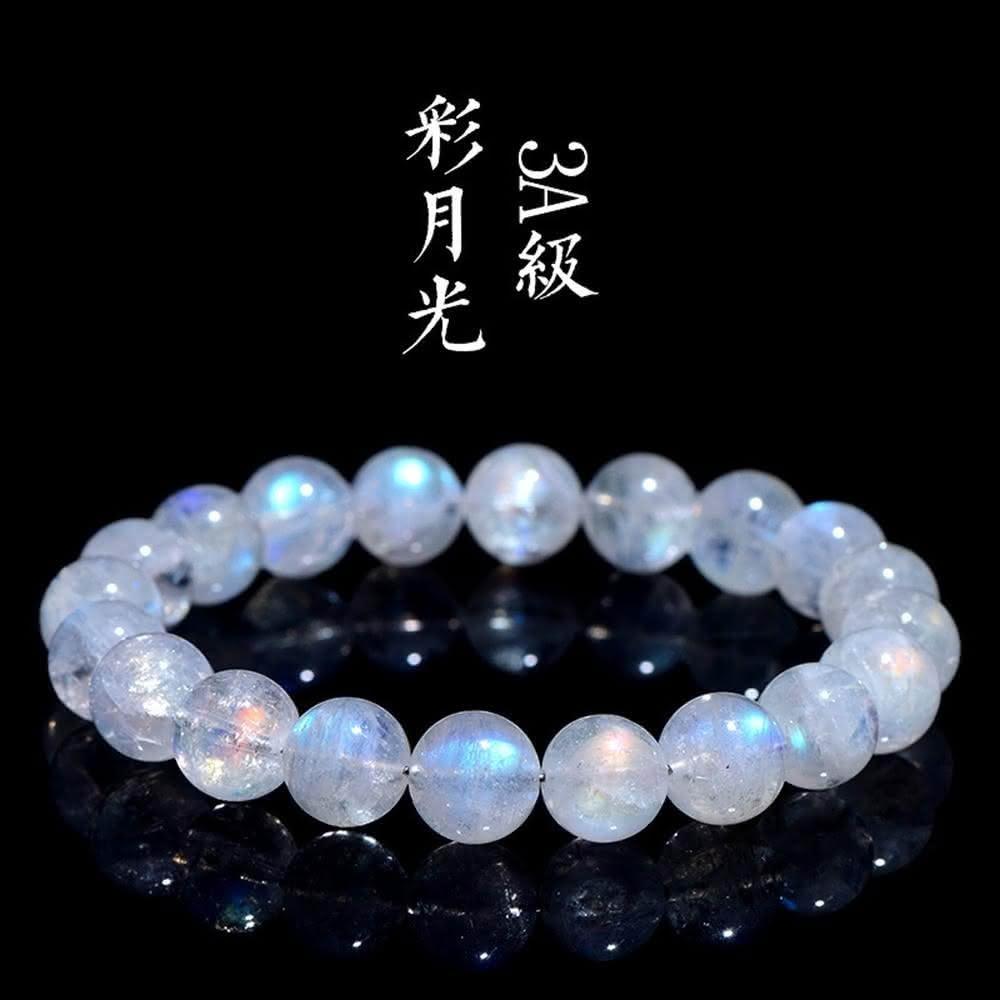 Paiya 派亞3A馬島藍彩月光圓珠手鏈馬達加斯加彩虹月光石手串