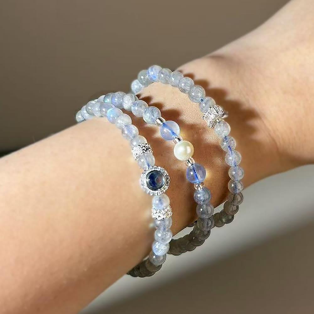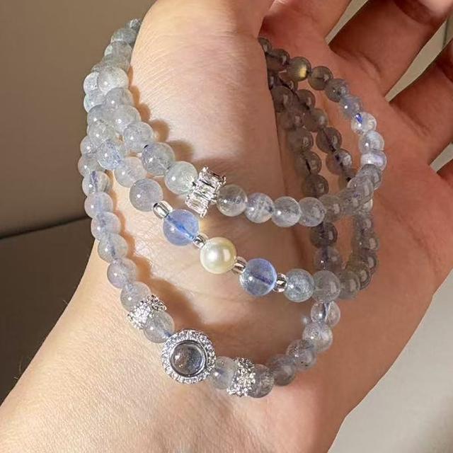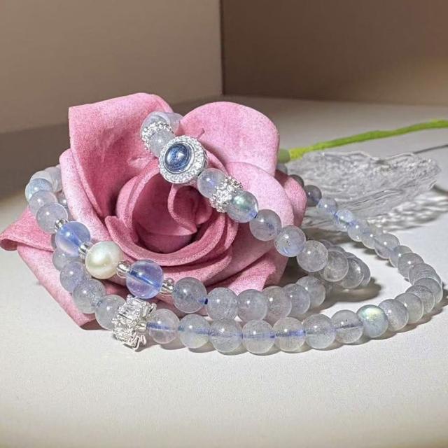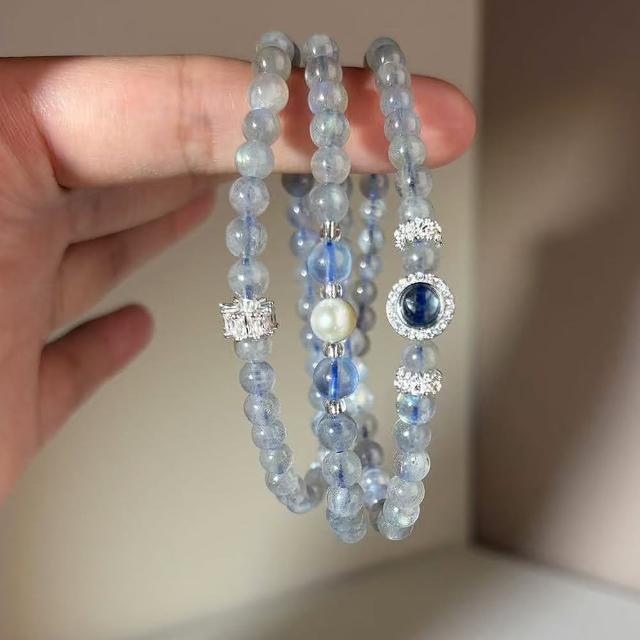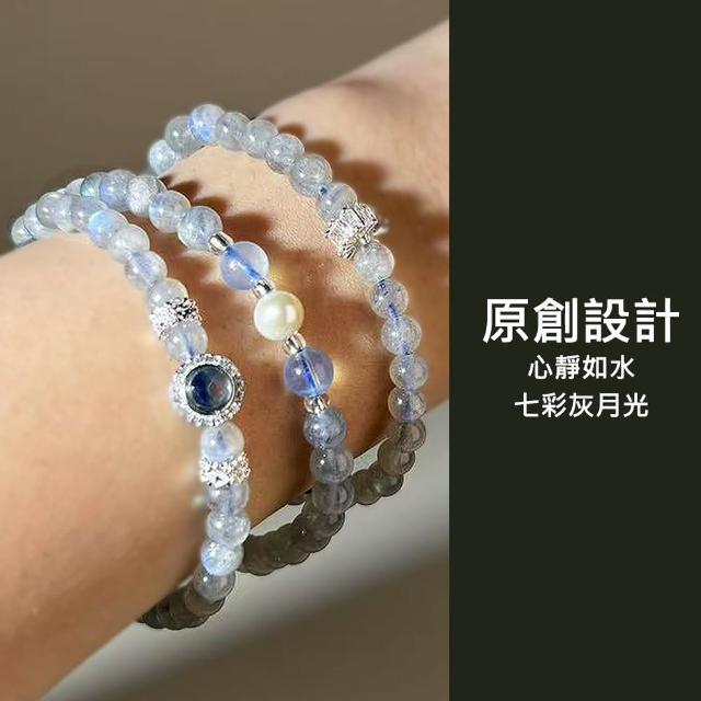 Paiya 派亞5mm原創設計心靜如水七彩灰月光海藍寶轉運珠三圈手串手鍊可當項鍊