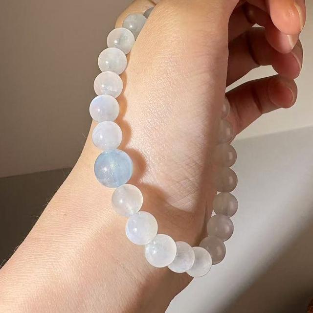 Paiya 派亞原創設計7mm藍月光5A冰種海藍寶藍磷灰單圈手串海月之光