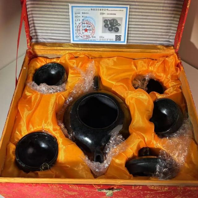 Paiya 派亞出貨時間10天藥王石茶具茶壺杯子套裝墨玉茶壺茶杯蛇紋石黑玉器磁性茶具有禮盒有證書