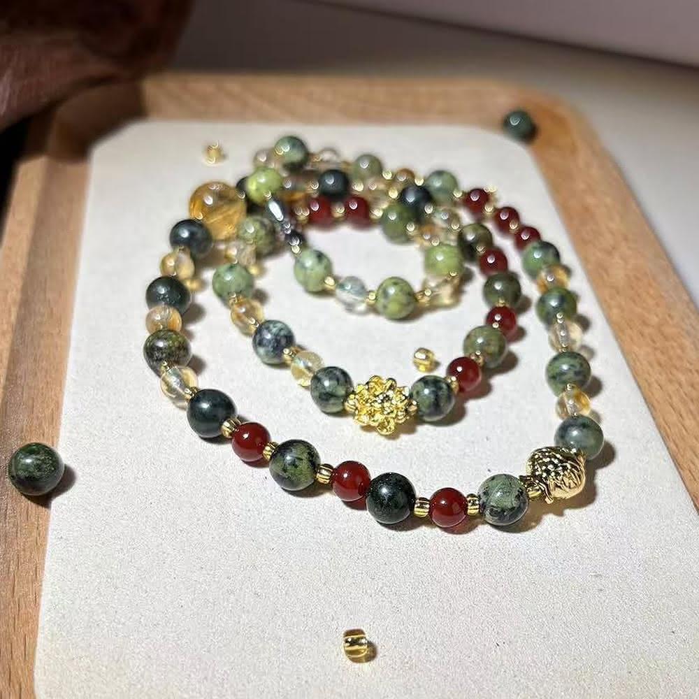 Paiya 派亞原創設計師藥王石有磁性紅瑪瑙黃水晶三圈手鏈可當項鍊藥石三環能量