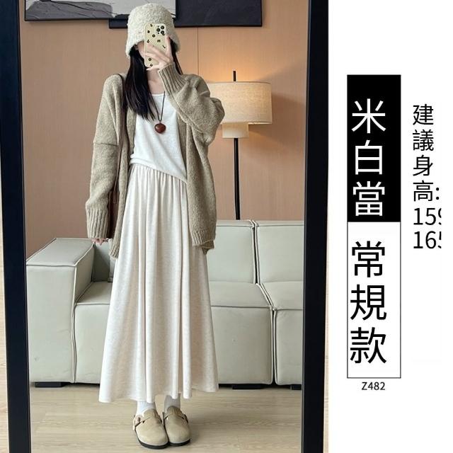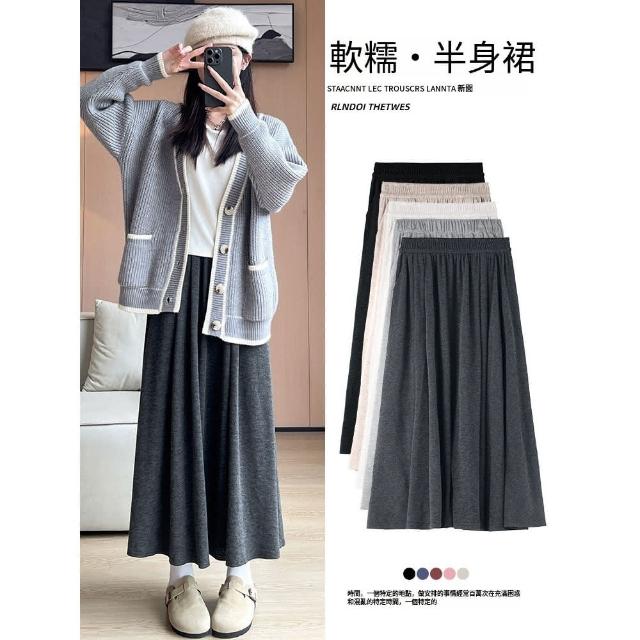 Paiya 派亞灰色糯米裙女新款高腰大擺裙a字顯瘦長裙子秋冬季加絨半身裙S-L可穿