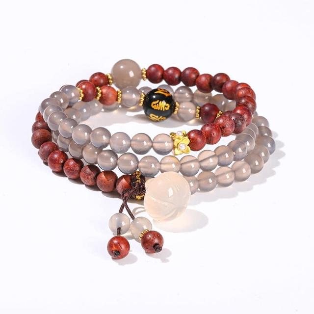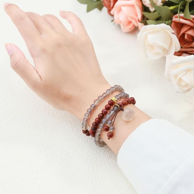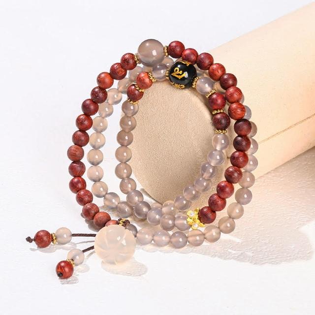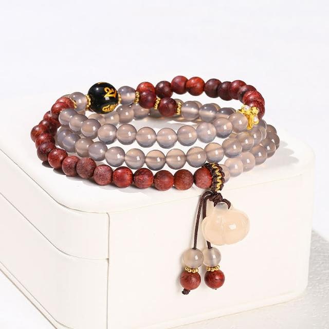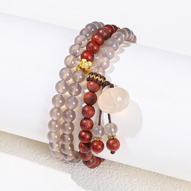 Paiya 派亞7A灰瑪瑙拼紅花梨木多圈手鏈瑪瑙南瓜國風手串送禮好物/交換禮物