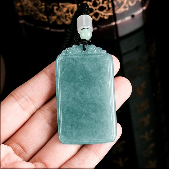 Paiya 派亞天然A貨翡翠藍水平安無事牌玉石吊墜冰種挂件男士項鏈女款玉墜交換禮物/送禮