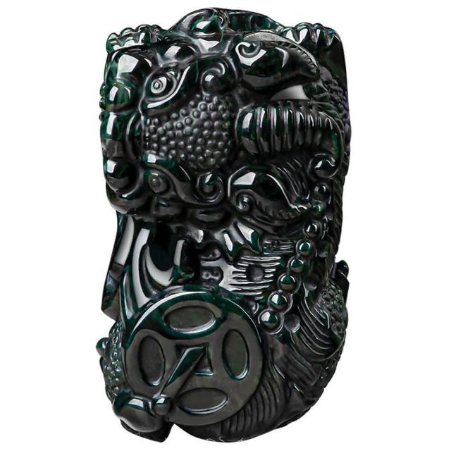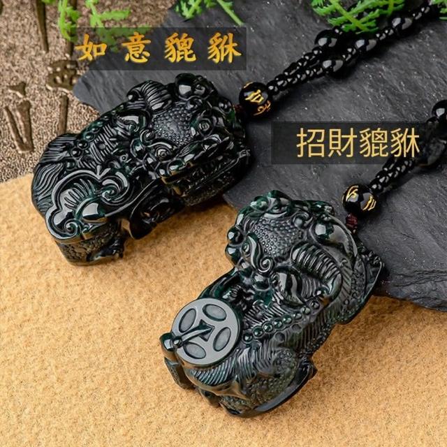 Paiya 派亞墨玉A貨翡翠霸王貔貅金錢如意冰種玉石吊墜皮丘挂件壹對送禮好物/交換禮物