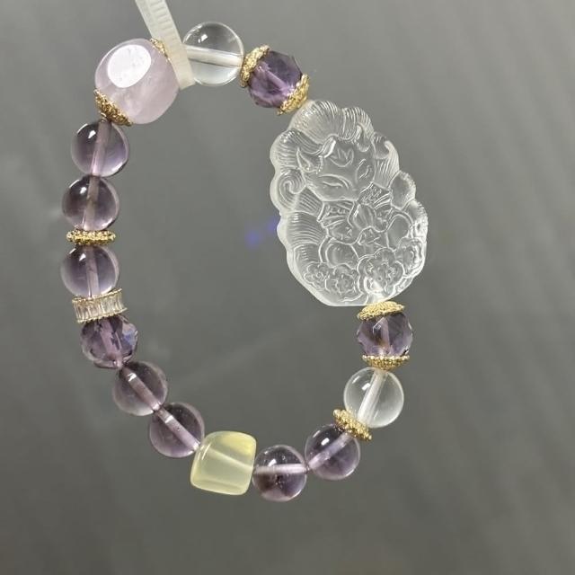 Paiya 派亞白水晶九尾狐手鏈搭配玻利維亞紫水晶女款單圈手串(送禮好物/交換禮物)